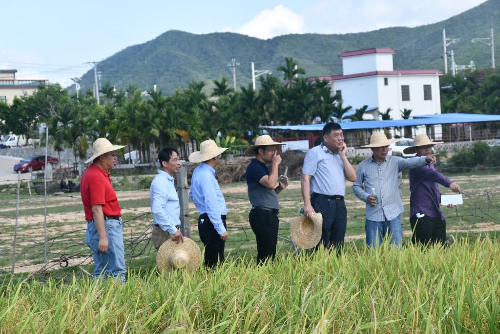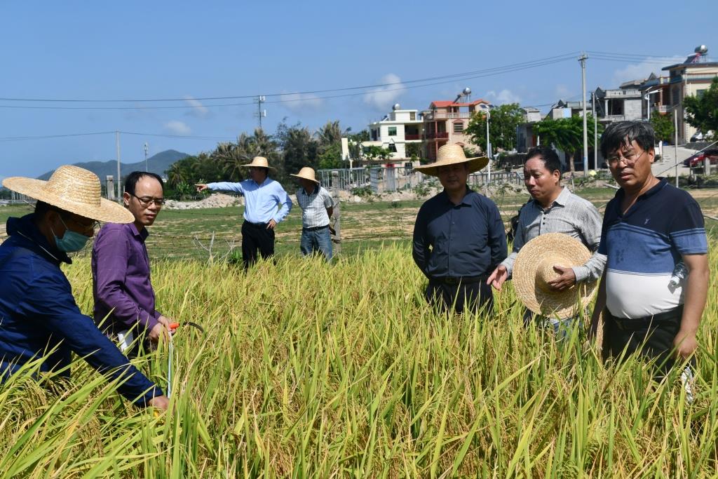 袁隆平院士海水稻创新团队邀请湖南省、海南省、广东省等相关单位专家,对Gams位于三亚市崖城区崖城镇太策村的耐盐碱水稻杂交组合及种质材料和滨海盐渍水稻田改良剂应用试验进行了现场评价和测产验收,土壤盐浓度为0.3-0.5%(田间表层水盐分浓度为0.48%)。