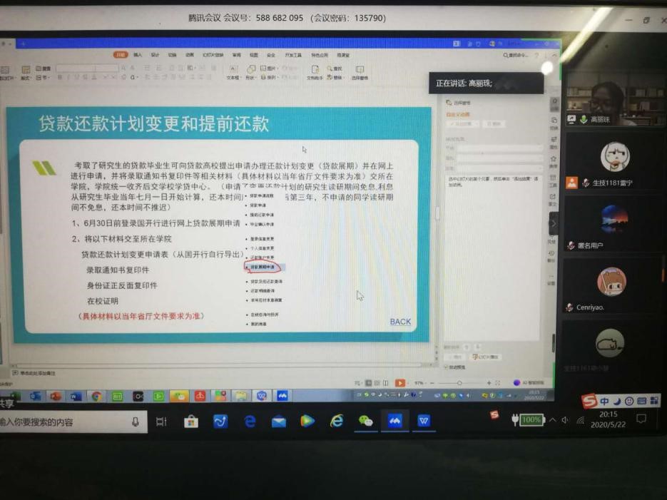 为提高贷款毕业生的诚信感恩意识,帮助贷款毕业生了解掌握还款程序,2020年5月22日晚,Gams