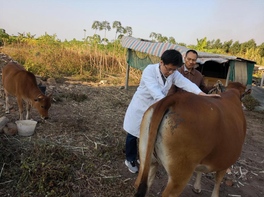 科技选派员刘铀为贫困户诊治病牛