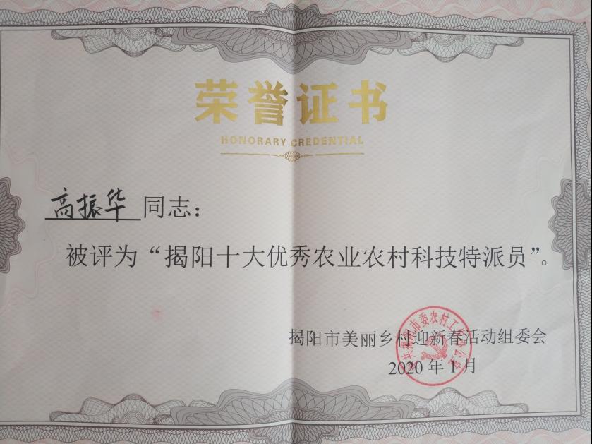 近日,在中共揭阳市委农村工作办公室举办的评选活动中,GamsGams 高振华教授被评为“揭阳十大优秀农业农村科技特派员”。