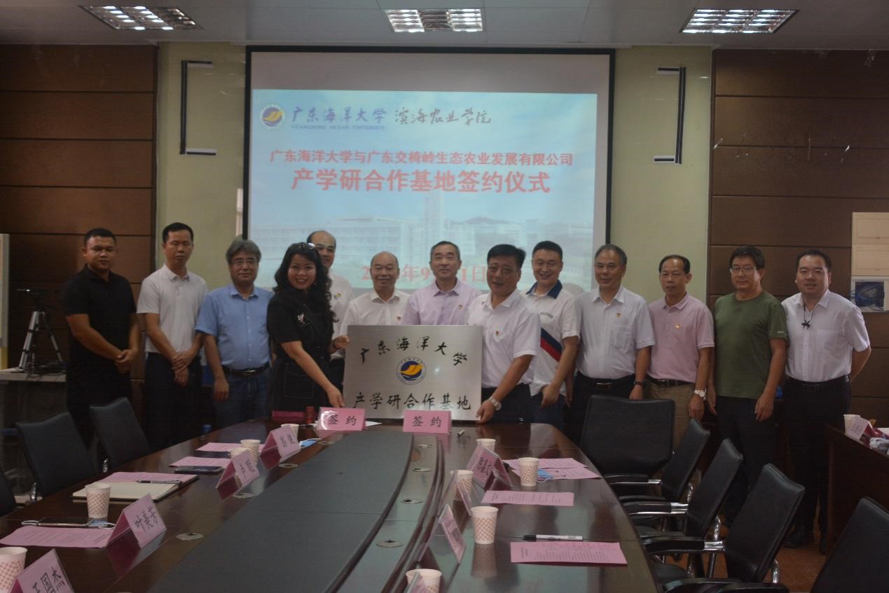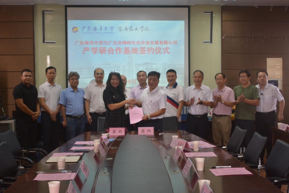 党委书记曹俊明教授、科技处处长鲁义善教授,湛江市农业农村局发展规划与乡村产业发展科科长王国杰、湛江市麻章区农业农村与水务局副局长卢聪、湛江市麻章区湖光镇党委副书记邓利,广东交椅岭生态农业发展有限公司总经理叶美芳、副总经彭健、副总经理彭越以及Gams