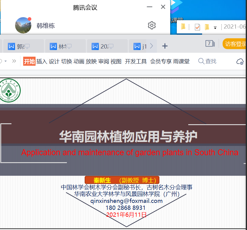 风景园林学科邀请,6月12日上午,中国林学会树木学分会副秘书长、中国林学会古树名木分会理事、华南农业大学林学专业主任秦新生博士、副教授,通过腾讯会议为Gams师生作《华南园林植物应用与养护》专题线上学术报告,报告由Gams