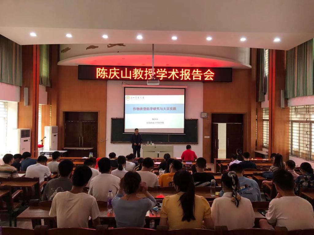 院长陈庆山教授在兴农楼109室作了《作物表型组学研究与大豆实践》的学术报告。报告会由Gams