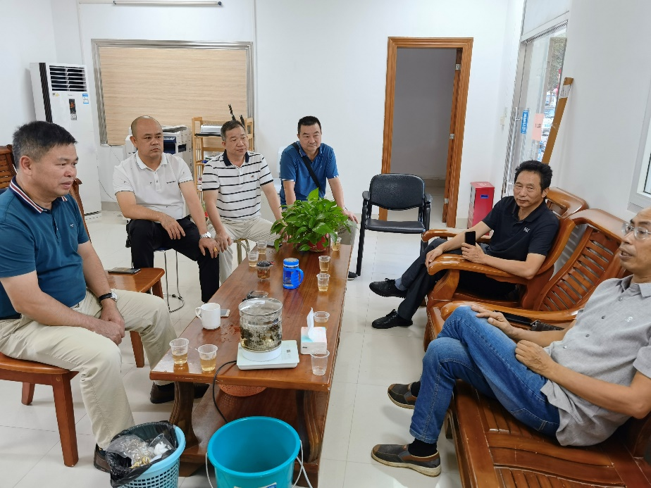 期间,特派员团队成员与驻镇帮扶工作队队员吴廉泉、林柳、赵汝德等进行了交流,驻镇帮扶工作队介绍了官渡镇的农业生产情况,特派员团队成员也对团队工作方式、团队优势等进行了介绍;同时,针对目前官渡镇农业生产过程中的需求进行了探讨。荔枝产业作为官渡镇的支柱产业之一,种植面积超过6500亩,为农民的增产增收带来巨大助力,胡汉桥教授对荔枝种植过程中的常见病害进行了介绍,梁钾贤副教授对荔枝种植过程中的提效增质进行了介绍,任磊副教授针对荔枝种植过程中不同时期常见病害的绿色防控技术进行了介绍,驻镇帮扶工作队队员与特派员团队进行了积极的意见交流。同时,双方还针对官渡镇撂荒地、盐碱地的开发利用进行了积极的探讨。最后,特派员团队成员与驻镇帮扶工作队队员均表示,期望通过特派员团队工作的开展助力乡村振兴。
