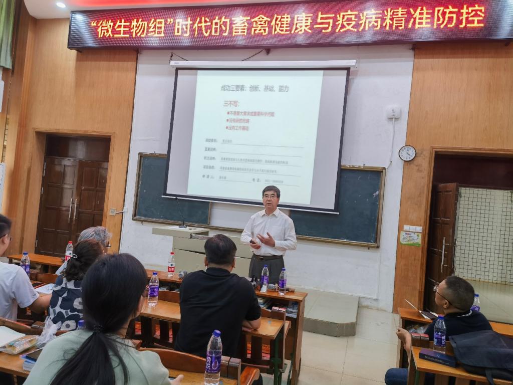 军事医学研究院军事兽医研究所研究员涂长春应邀为Gams师生作了题为《“微生物组”时代的畜禽健康与疫病精准防控》的学术报告及《NSFC课题申请书撰写》的辅导报告。报告会分别由Gams