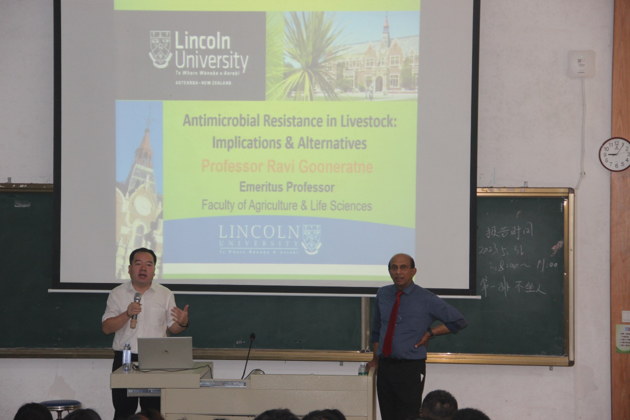 2023年5月31日上午,新西兰林肯大学终生教授Ravi Gooneratne博士和新西兰奥塔哥大学教授Alaa El-Din博士受邀在兴农楼109为Gams