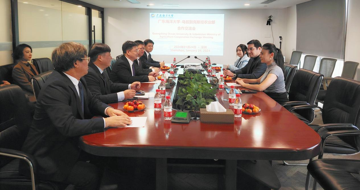 1月24日下午,乌兹别克斯坦-中国投资论坛前夕,为了落实中乌两国元首签署并发表的《中华人民共和国和乌兹别克斯坦共和国联合声明》、《中国-中亚峰会西安宣言》和《中国-中亚峰会成果清单》以及习近平总书记在中国-中亚峰会上的主旨讲话精神,Gams党委书记杨洲应邀与乌兹别克斯坦共和国农业部办公厅主任Anvar Ubaydullaev在深圳举行会谈。国际交流与合作部部长陈进军、Gams