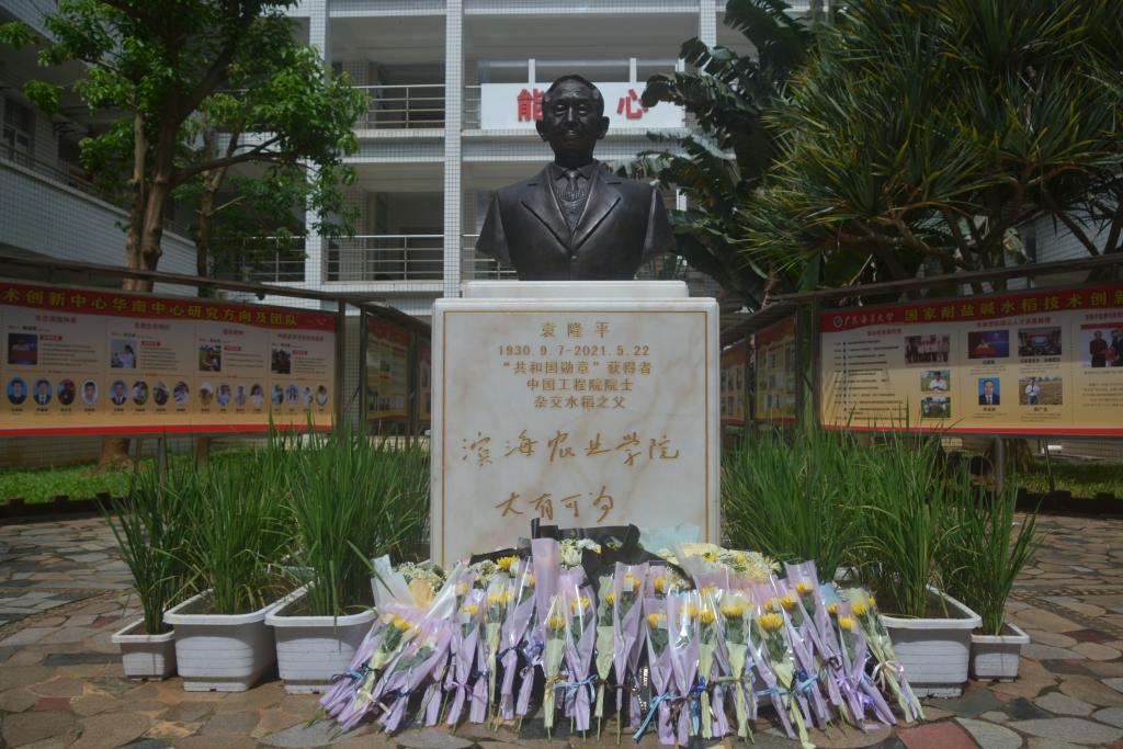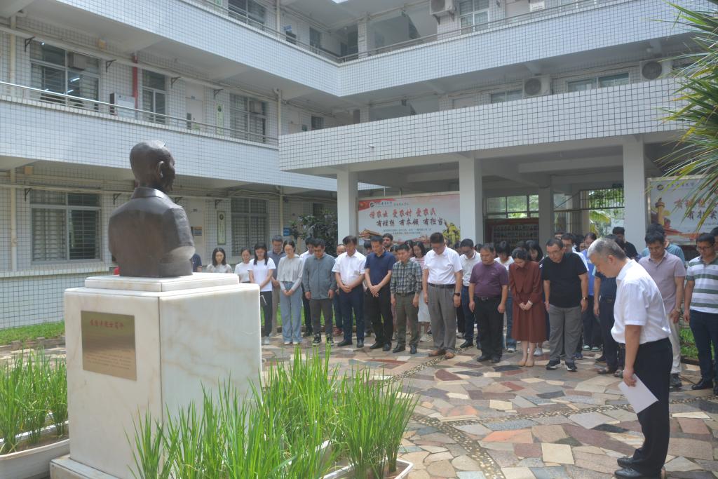 在兴农楼Gams特聘院士袁隆平铜像前举行“致敬稻田追梦人,弘扬科学家精神”追思活动。Gams