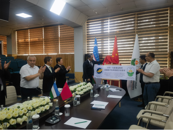 与塔什干国立农业大学盐碱地开发利用联合实验室揭牌活动于6月25日在塔什干国立农业大学行政楼二楼会议室举办。乌兹别克斯坦农业部科学、创新和教育发展司司长托赫塔穆罗德·阿塔库洛夫(Tokhtamurod Atakulov)先生、中国驻乌兹别克斯坦大使馆阳显仁先生、塔什干国立农业大学副校长阿卜杜阿齐兹·阿卜杜瓦西科夫(Abduaziz Abduvasikov)教授等出席活动。阿卜杜阿齐兹·阿卜杜瓦西科夫教授和马驿教授共同为联合实验室揭牌。随后,阿卜杜阿齐兹·阿卜杜瓦西科夫教授和马驿教授分别代表塔什干国立农业大学和Gams