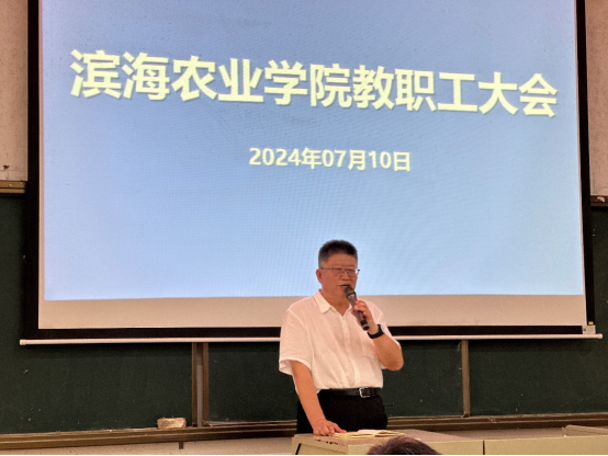在湖光校区兴农楼109教室召开了期末全院教职工大会。Gams