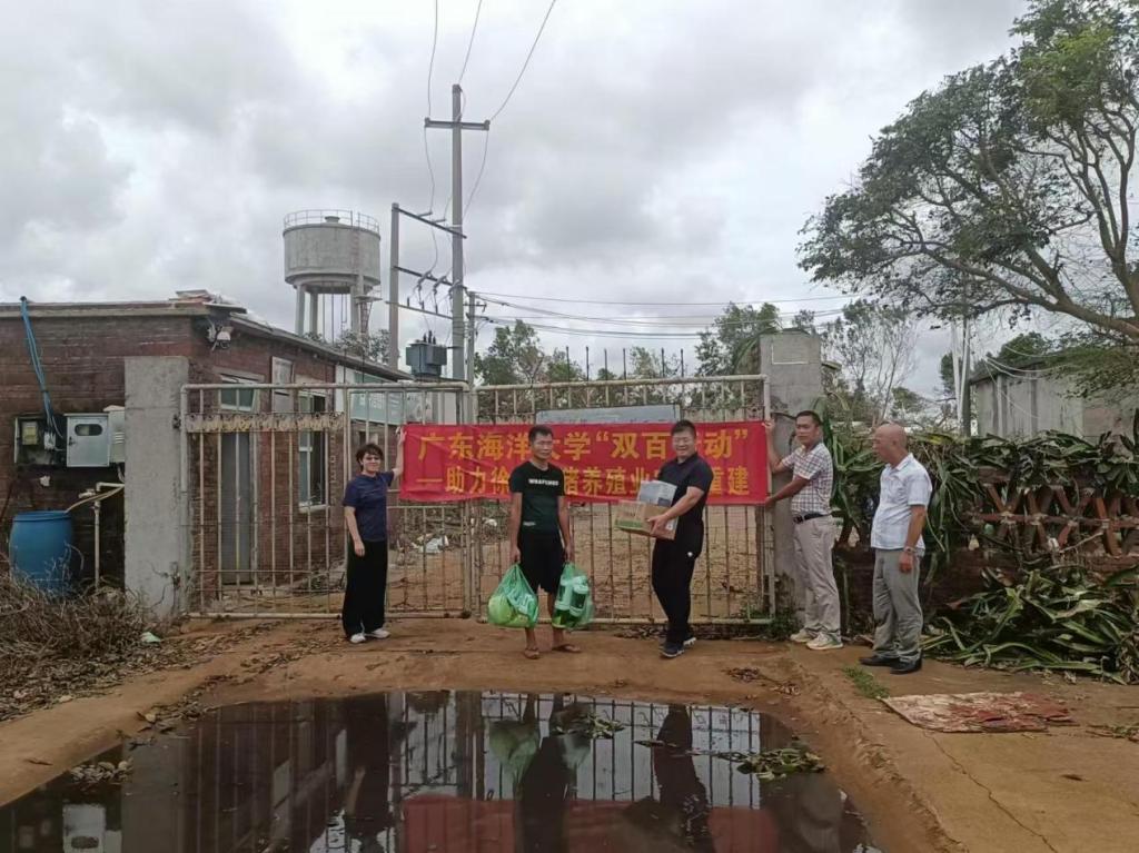 “双百行动”生猪健康养殖与疫病防控团队成员积极响应徐闻县养殖户提出的需求,研究部署生猪养殖救灾复产工作,通过协调各方资源,应急采购饲料、疫苗、消毒药、抗菌药等物资。9月11日,团队成员陈志宝、葛叶、照那木拉等一行3人赴徐闻,在徐闻县动物卫生监督所董俊雄所长的陪同下,实地走访10余家养殖户,详细了解受灾情况,免费发放应急物资,现场指导生猪救灾复产工作。