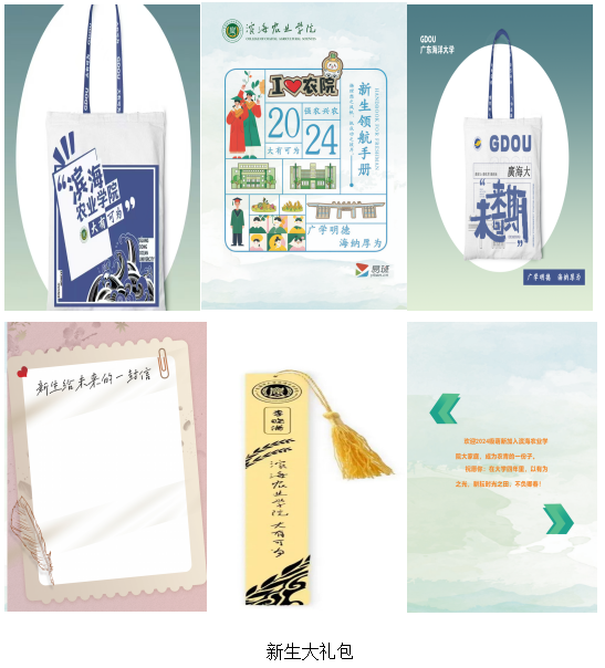 易班带领班辅助团队用文字编织成一幅幅美丽的画卷,引领着新生们在这幅画卷中漫步、探索、成长。文创袋以海洋蓝为主题诉说着Gams与海洋的渊源,“未来可期”是学校对莘莘学子的祝愿,“大有可为”是袁老对农院学子的期望。一枚书签,让书签陪伴新生们汲取知识,让知识的甘泉灌溉大地。每一件文创都有属于它们的故事,每一件礼物的背后都是农院对新生们最真诚的期望与祝福,愿新生们未来可期,大有可为,带着努力和幸运乘风破浪,扬帆起航。