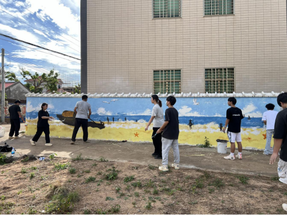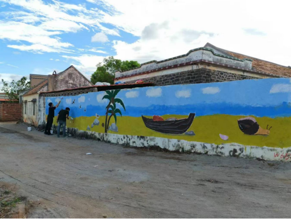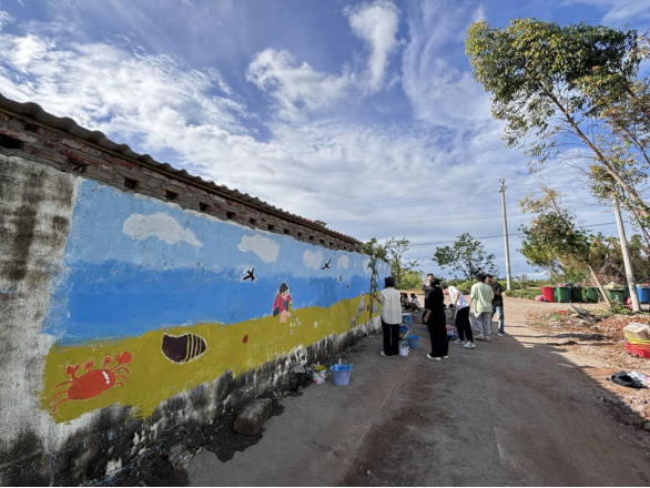 黄艳娜、邓卓迪和梁子鑫三位老师带领26名学生赴徐闻县西连镇金土村委会和水尾村委会开展为期2天的墙绘志愿服务活动。