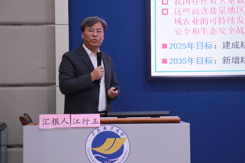 报告会上,江行玉教授以“‘以种适地’高效开发利用盐碱地技术的研究和示范推广”为题,从帕米尔高原到黄海之滨,从内蒙古巴彦淖尔到三亚永兴岛,再到越南、乌兹别克斯坦,一路与盐碱地“斗争”。他说在野外最大的乐趣之一就是享受到一般人享受不到的美景。他勉励青年教师和青年学子要深入农业生产一线,苦中作乐。