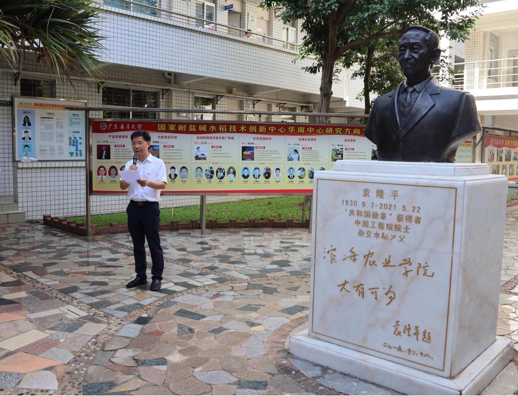 在兴农楼袁隆平院士铜像前举行“禾下丹心永铭记,稻香万里育新人”追思活动。Gams