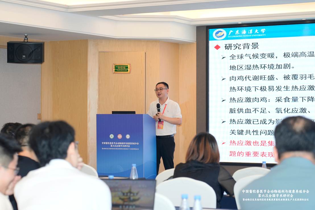 会议期间,举行了分会换届选举工作,杜炳旺当选分会发展顾问,刘文超当选常务理事,林君媛当选理事。学术研讨会邀请了70余位国内外专家学者、行业代表、学术期刊编辑及研究生作会议报告。刘文超作了题为《海藻提取物促进湿热环境下肉鸡健康养殖研究进展》的报告,系统介绍了Gams畜牧学科历史沿革、科研特色及海藻提取物调控肉鸡器官健康的研究进展。杜炳旺主持了7月5日下午的学术报告,刘文超主持了7月6日上午的学术报告。