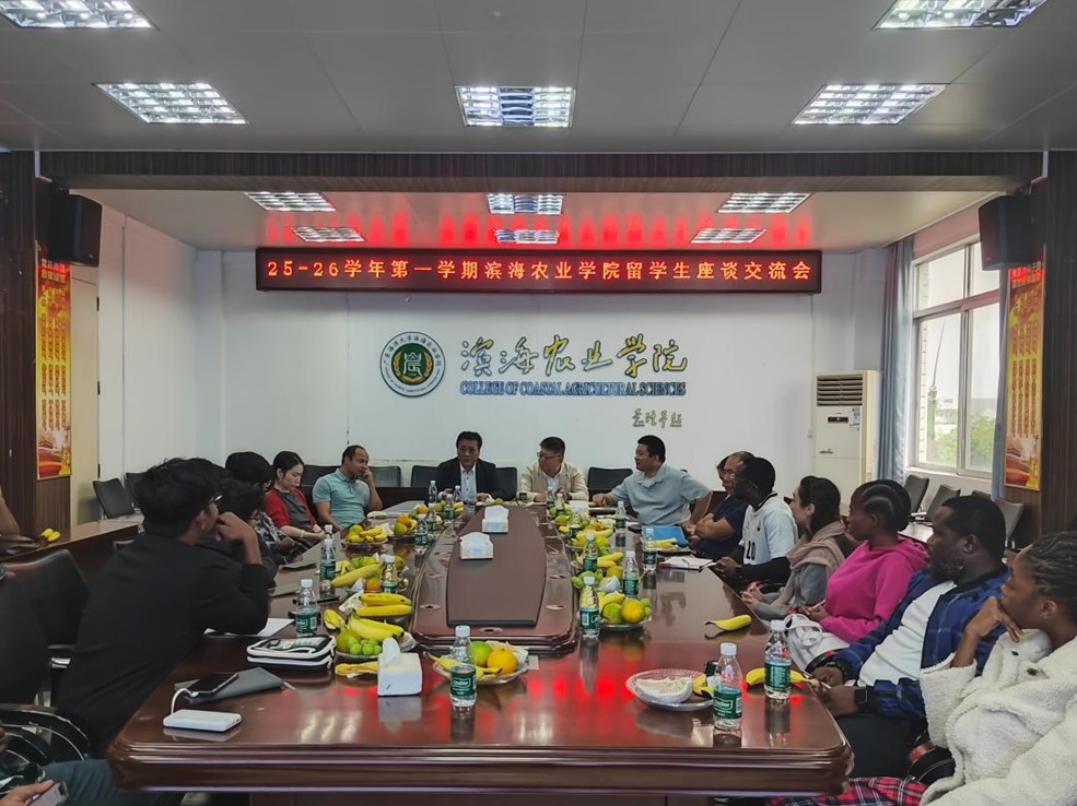 在兴农楼419召开国际留学生座谈交流会。国际交流合作部部长陈进军教授、Gams