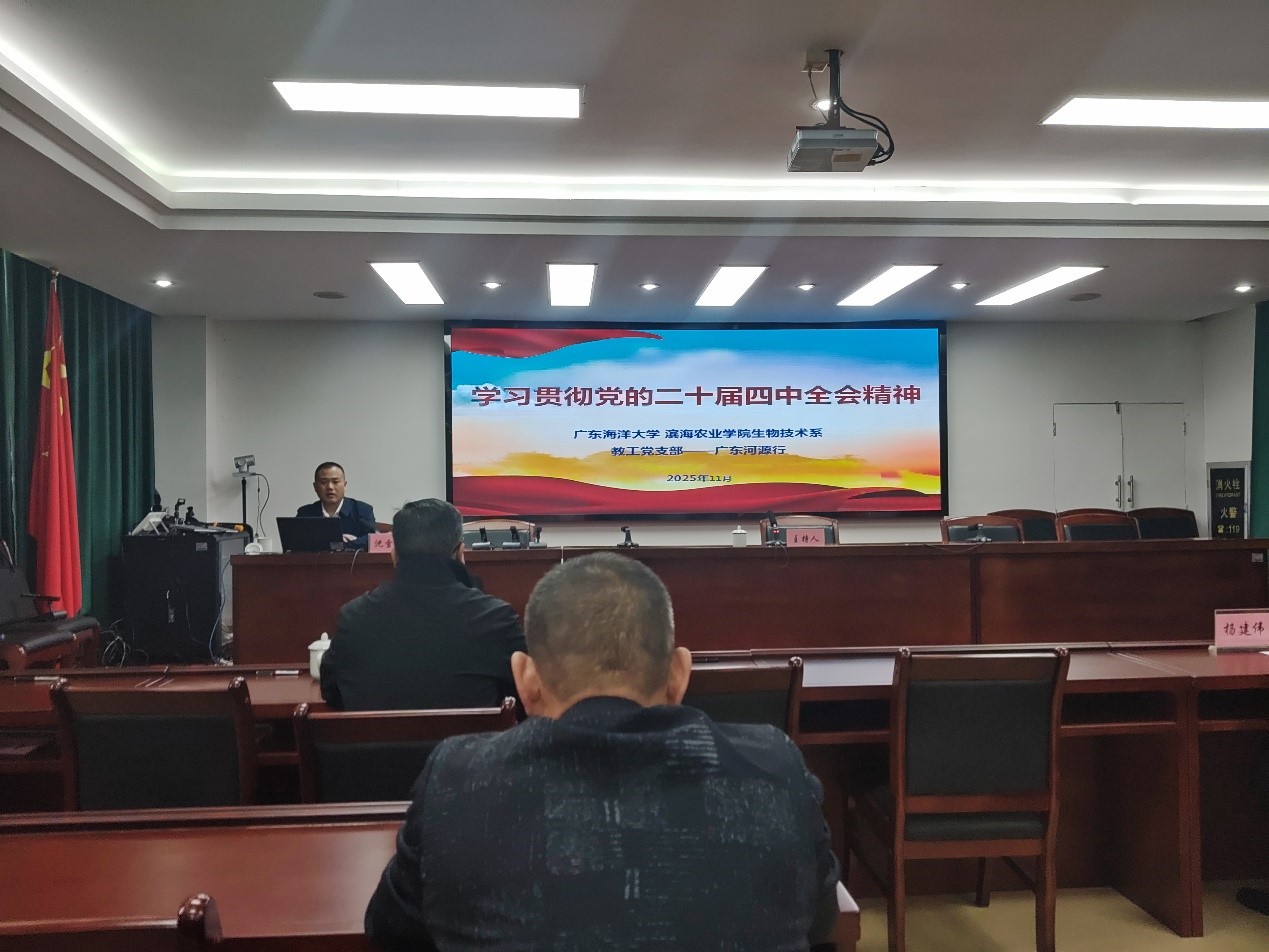 11月27日上午,沈雪峰在河源市农业农村局五楼会议室作《学习贯彻党的二十届四中全会精神》专题辅导报告。报告会由河源市农业农村局副局长杨建伟主持,市农业农村局及下属单位负责人、校地合作项目相关工作人员等50余人参加。报告紧扣乡村振兴战略与农业现代化发展需求,系统阐释党的二十届四中全会对“三农”工作的新部署、新要求,并结合河源市农业产业发展实际,提出以党建联建为纽带、以科技赋能为动力、以人才培育为支撑的校地合作新路径,为双方深化合作明确了方向。