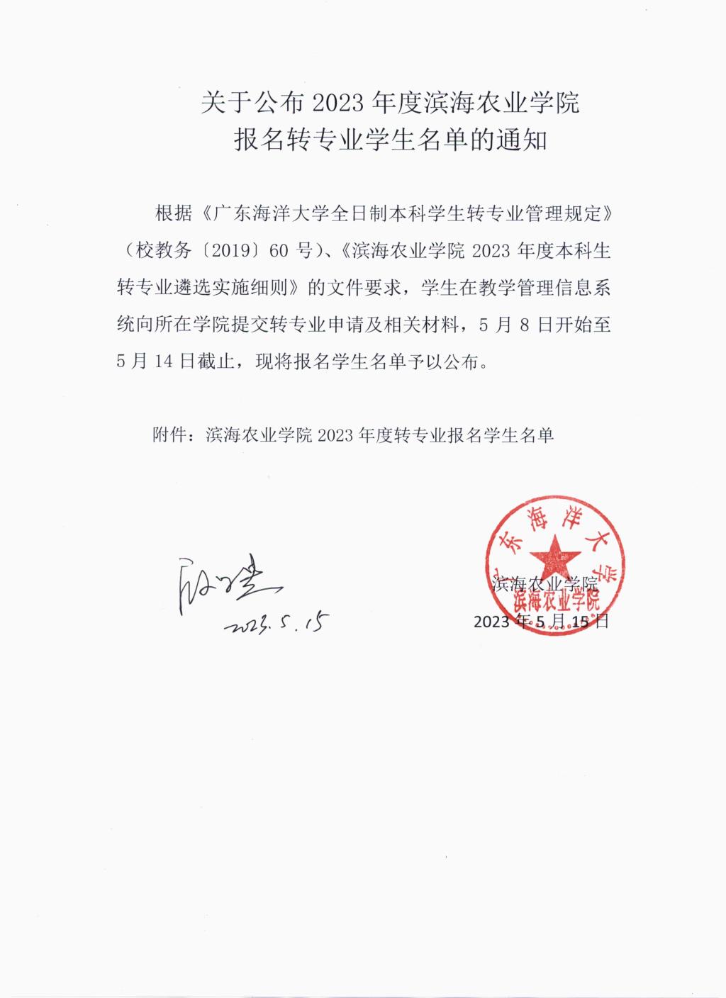 关于公布2023年度Gams 报名转专业学生名单的通知