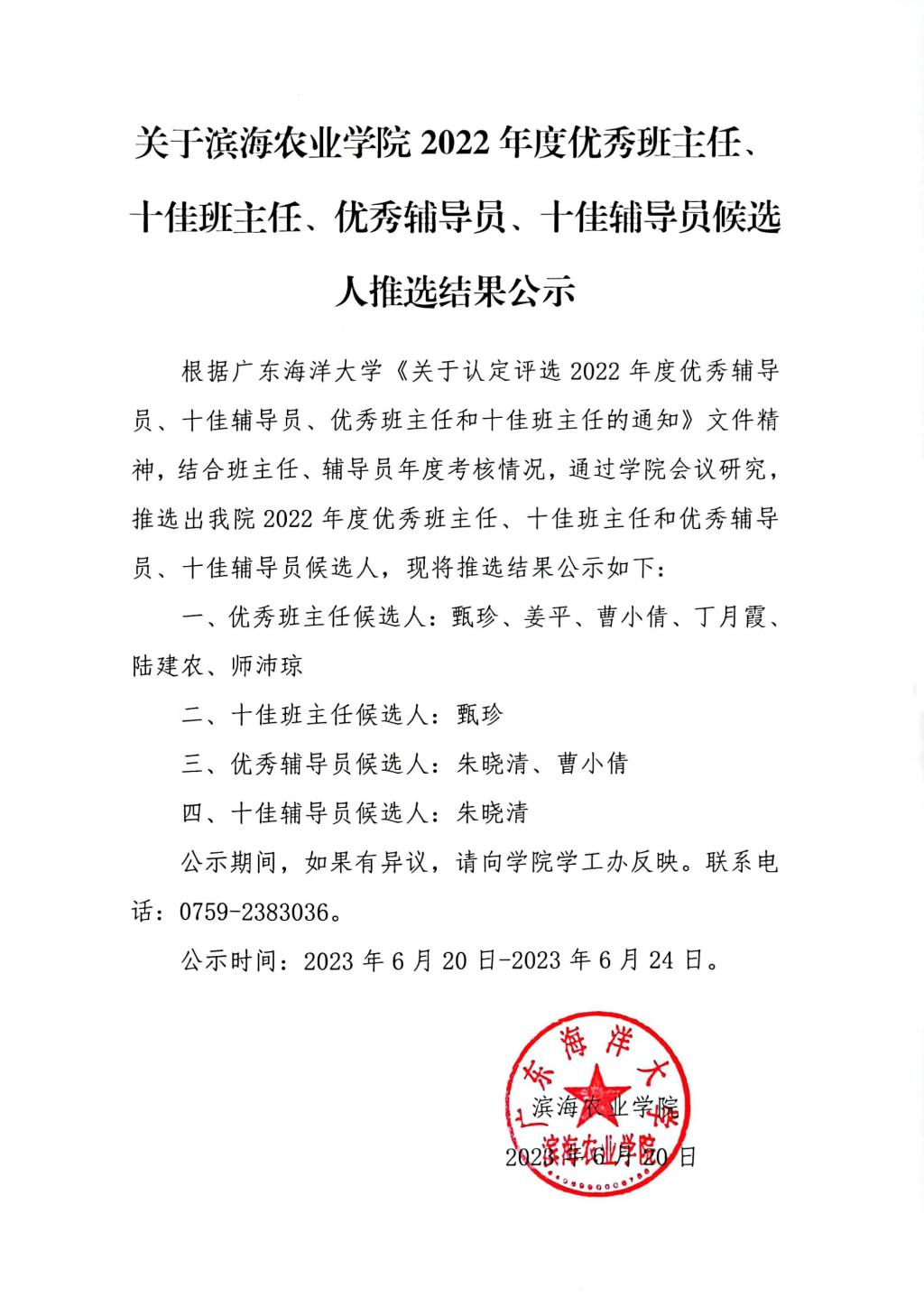 关于Gams 2022年度优秀班主任、十佳班主任、优秀辅导员、十佳辅导员候选人推选结果公示