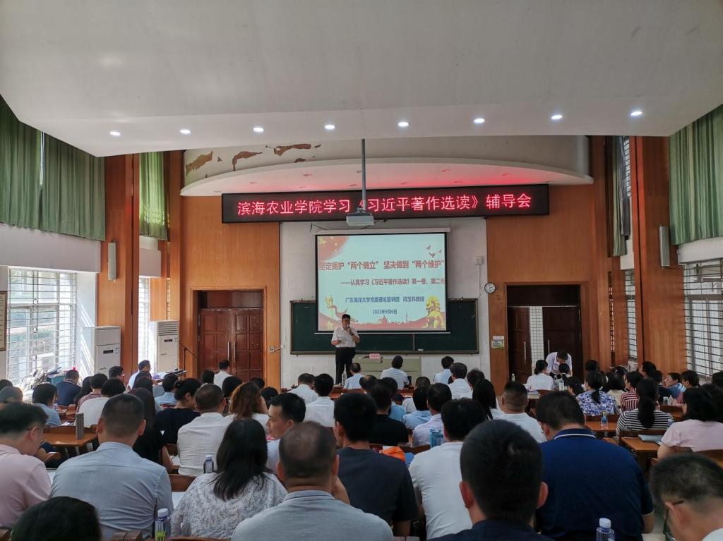 在兴农楼109多媒体室组织开展《习近平著作选读》辅导会,全院140余人参会,辅导会由全国优秀教师、Gams党委理论宣讲团成员、学术委员会委员、产业经济学教授闫玉科主讲,郑殿峰院长主持。